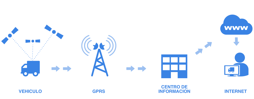 La Información enviada por el GPS en intervalos predeterminados - por ejemplo, cada 3 minutos, las unidades registradas envía la información de la posición vía GPS hacia el Centro de Información de BNX utilizando comunicación GPRS.